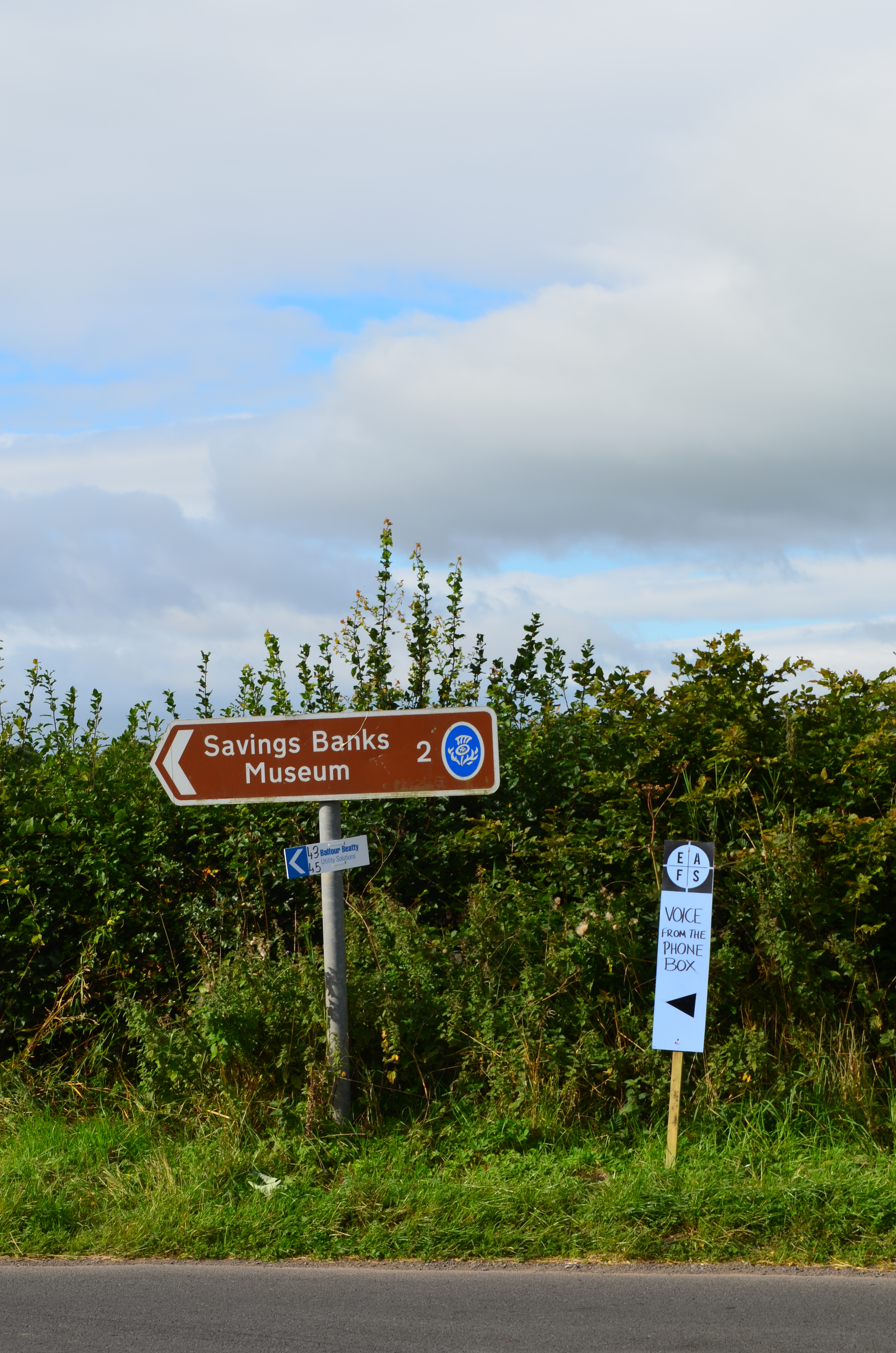 Mum (Artist Assistant, part time courier, kitchen table publisher). Matt. Leah. Jan. (Thank you all for an amazing opportunity – I hope I made the most of it (sorry about the artist’s talk thing – thanks for being the first one). Tonia. (the calm front when the police show up). Susan and John Gilbert. Joan Dodd and the other members of the Clarencefield Community Council. The open minded, friendly faced inhabitants of Clarencefield – an amazing wee village. Rob Airley: electrical genius. The Voices: Dave. Anne. Lesley. John. Paula. Ruth. Graeme. Eileen. Will. Everyone who turned up at Stormont Hall and showed both kindness and patience when I hit a sheer wall of panic. Thanks for not walking out. Friends, family, Stovies, locals, EAFS trekkers, Suvi from Finland (long distance award) who trekked to Clarencefield to stand in an old phone box and listen. Anyone who has emailed me a photo of a phone box or related information in the past six months. All I’m missing now is the phone box collection in the back garden…