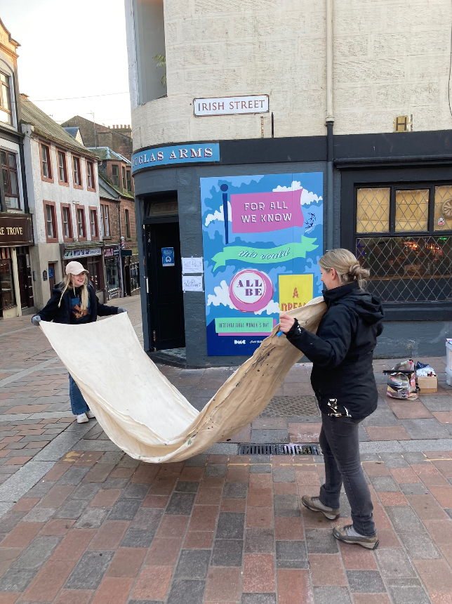 Quickly followed by our first mural, commissioned by Dumfries Music Conference for one of our favourite spots in town, The Dougie! Taking inspiration from a Nina Simone song, the mural was live painted over a weekend as part of International Women’s Day celebrations running throughout the month.